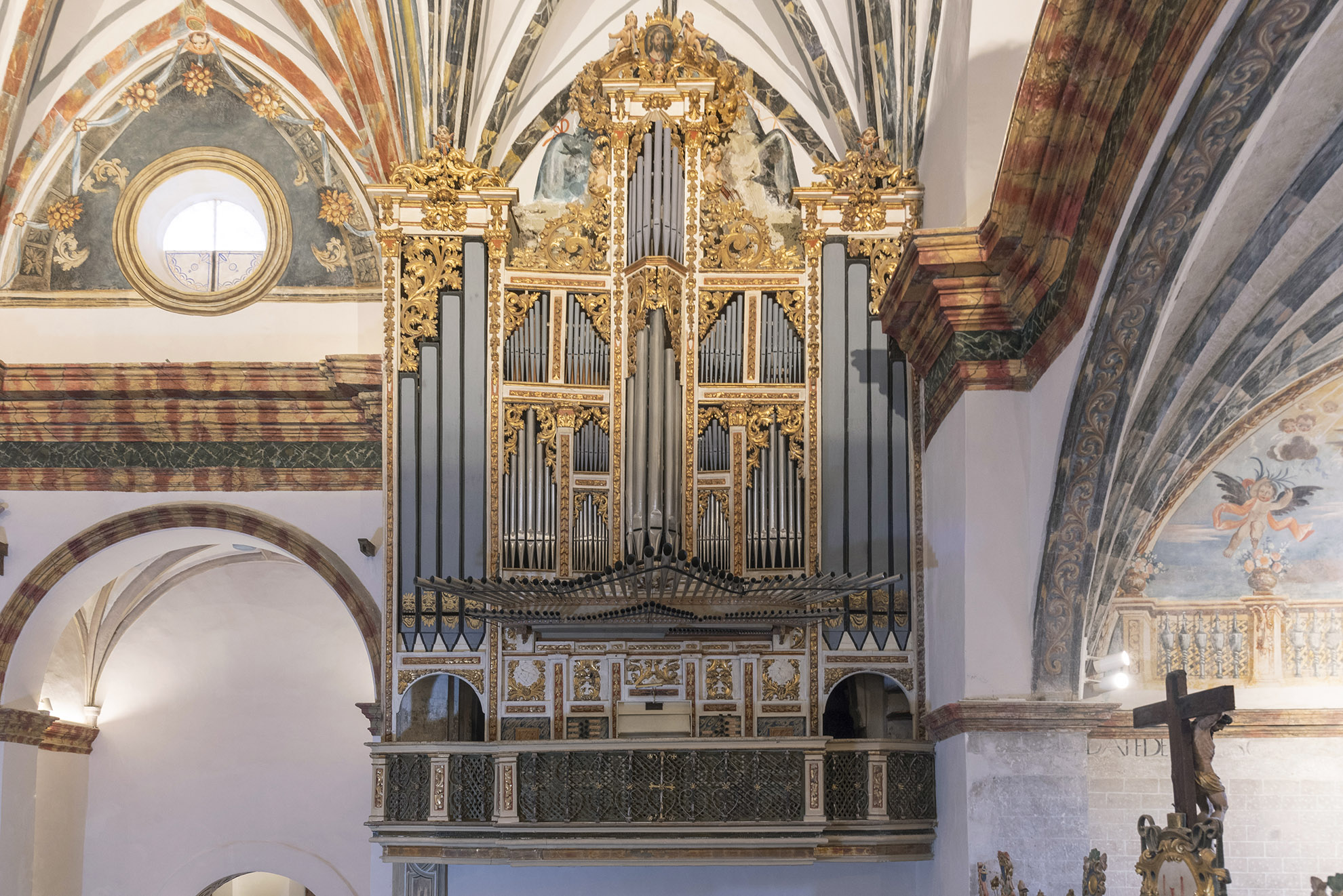 Normal 0 21 MicrosoftInternetExplorer4 Es una iglesia de traza original gótica, si bien en el siglo XVIII se realizaron modificaciones y ampliaciones que transformaron especialmente sus volúmenes externos y la cubierta interior. Tiene una sola nave, con testero recto y capillas entre los contrafuertes, que al parecer fueron construidas en una segunda fase en alguno de los tramos de un claustro anexo, que formaba parte de un conjunto conventual con establos, bodegas y otras dependencias de las que todavía se pueden rastrear algunos restos. La torre se sitúa a los pies de la nave. El interior presenta una nave dividida en seis tramos por medio de arcos fajones en arco apuntado y cabecera plana. Se cubre con bóveda de cañón apuntado, construida en el siglo XVIII en sustitución de la original, que era de madera sobre arcos perpiaños; de la antigua techumbre solo se conserva una viga decorada con pinturas de estilo gótico lineal. En la nave se abrieron capillas laterales que se cubren con pequeñas cúpulas con linterna, salvo la situada en el tercer tramo del lado de la epístola. Se trata de la capilla gótica de Santa Lucía, que es el elemento de mayor interés de la iglesia; está cubierta con bóveda de crucería de nervios y capiteles historiados. Todo el interior presenta una profusa decoración pictórica fechada en 1719. En el exterior, la fachada sur conserva una cornisa de canecillos en forma de bocel pertenecientes a la fábrica gótica, que queda encajada en el muro de la ampliación barroca. La portada se abre en el muro de la Epístola, a la altura del quinto tramo de la nave, en arco apuntado y decorada con un apostolado de estilo esquemático. Está protegida por un pequeño pórtico. También deben destacarse dos piezas desaparecidas: la talla románica de la Virgen de la Carrasca y la de la Virgen de la Araña, realizada en alabastro, conocida gracias a una fotografía del Archivo Mora.